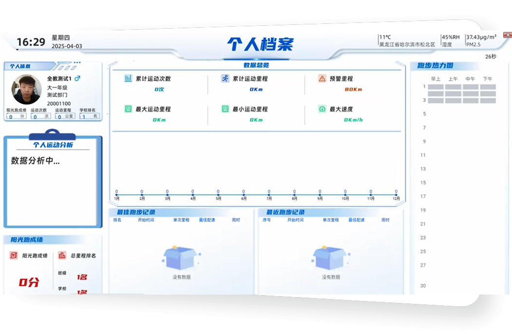 ▶ 数据可视化:学生每次跑步的数据详情自动汇总,实时查询。